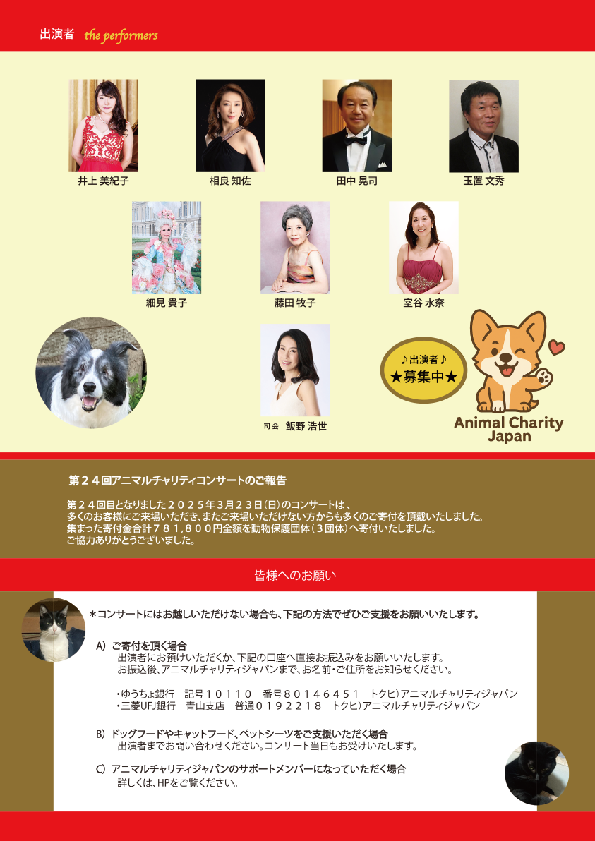 アニマルチャリティコンサート 出演者募集中♪